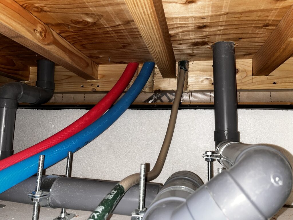 ライニングといって壁をフカして配管することで断熱層を痛めない作りです。
