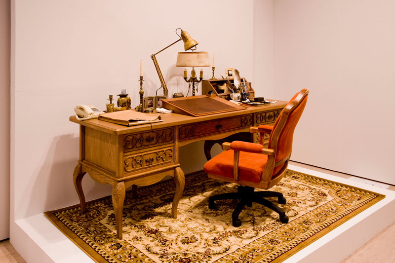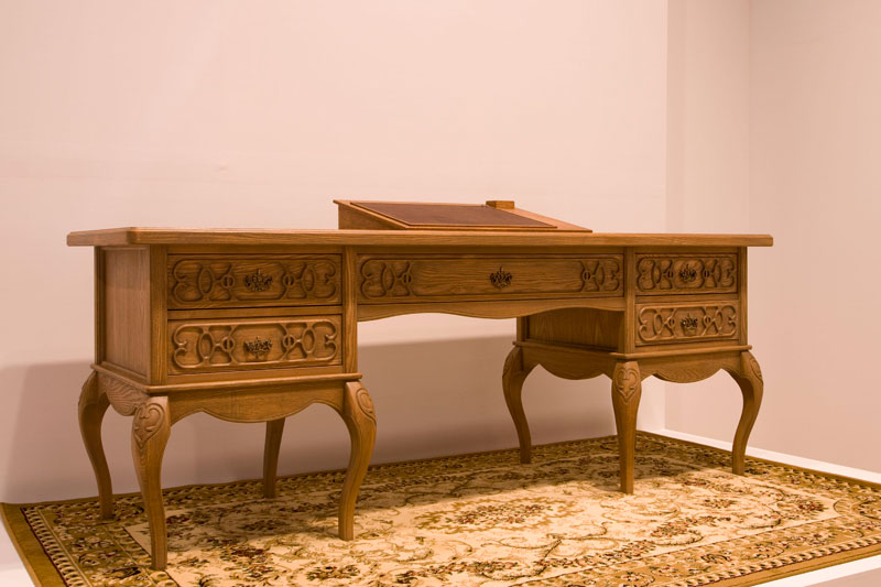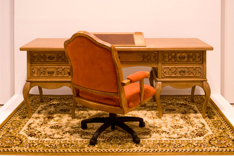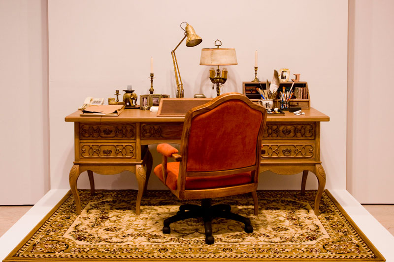 漫画「ジョジョの奇妙な冒険 第4部」の登場人物、岸部露伴の仕事机・椅子を忠実に再現するというコンセプトをもとに制作。