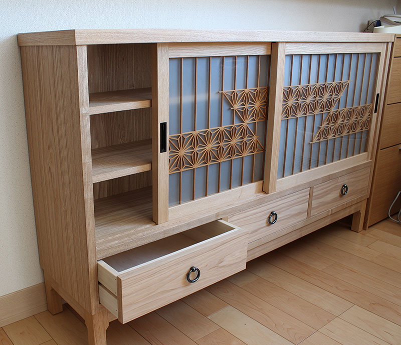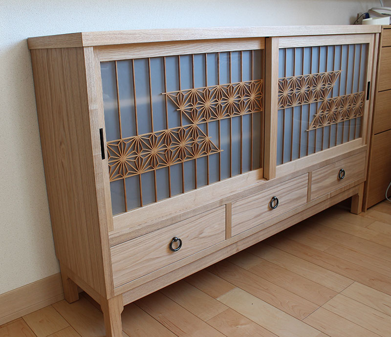 思い出のある組子障子を使用し戸棚にリメイクしました。